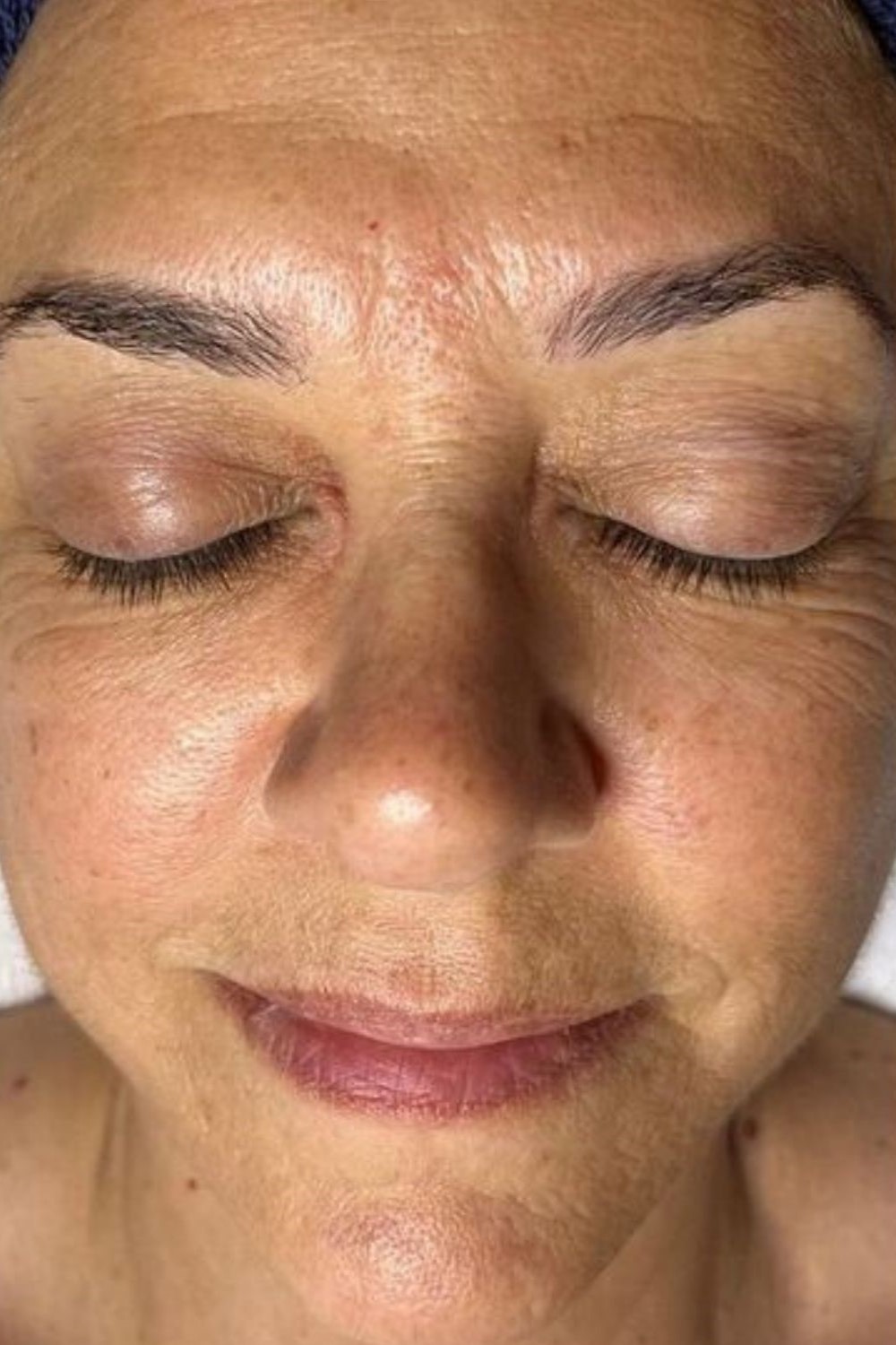 ✅ How it works: A targeted medical-grade mask is applied to hydrate, soothe, and replenish the skin barrier after RF and Blue Light.